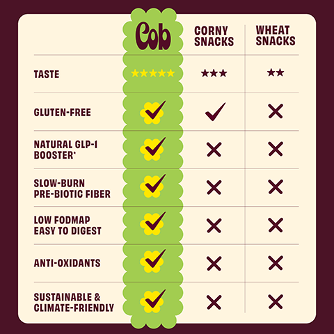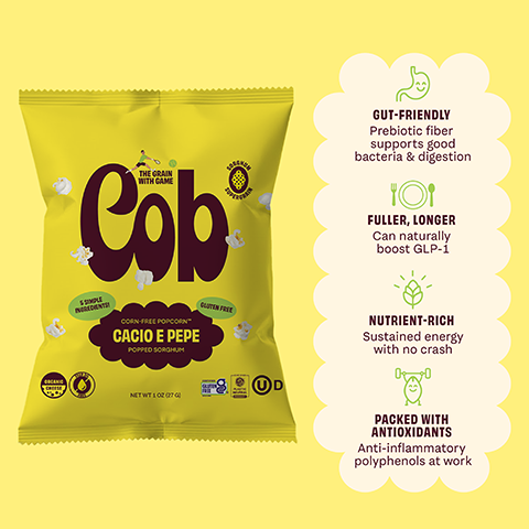 Our corn-free popcorn is made from popped sorghum, the gluten-free ancient grain that naturally boosts your GLP-1s to keep you fuller, longer. Cheesy, peppery, perfection. Made with real Organic Cheese and Cracked Black Pepper for a flavor that hits every craving just right. With gut-friendly prebiotic fiber and natural antioxidants, it’s as good for you as it tastes.