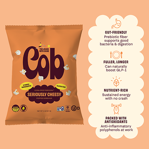 Our corn-free popcorn is made from popped sorghum, the gluten-free ancient grain that naturally boosts your GLP-1s to keep you fuller, longer. Our flavor sampler brings it all: salty, savory, cheesy, and peppery, each with the same light, crisp crunch that makes every handful a grand slam. With gut-friendly prebiotic fiber and natural antioxidants, it’s as good for you as it tastes.